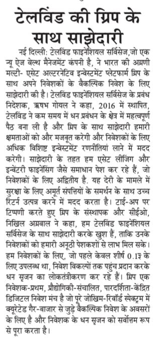 टेलविंड देगी वैकल्पिक निवेश समाधान ग्रिप के साथ साझेदारी