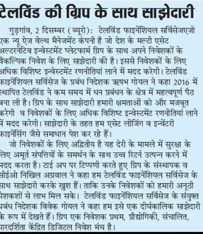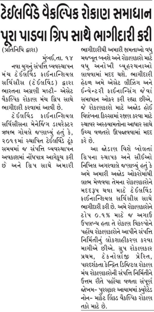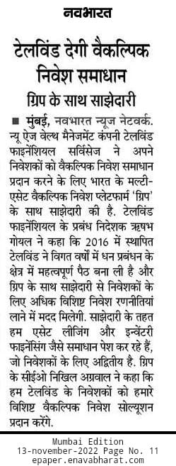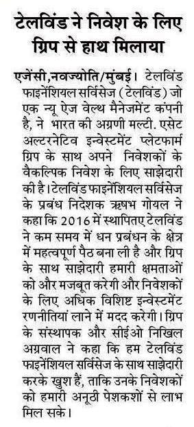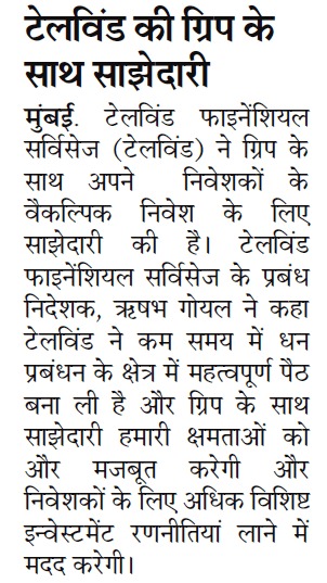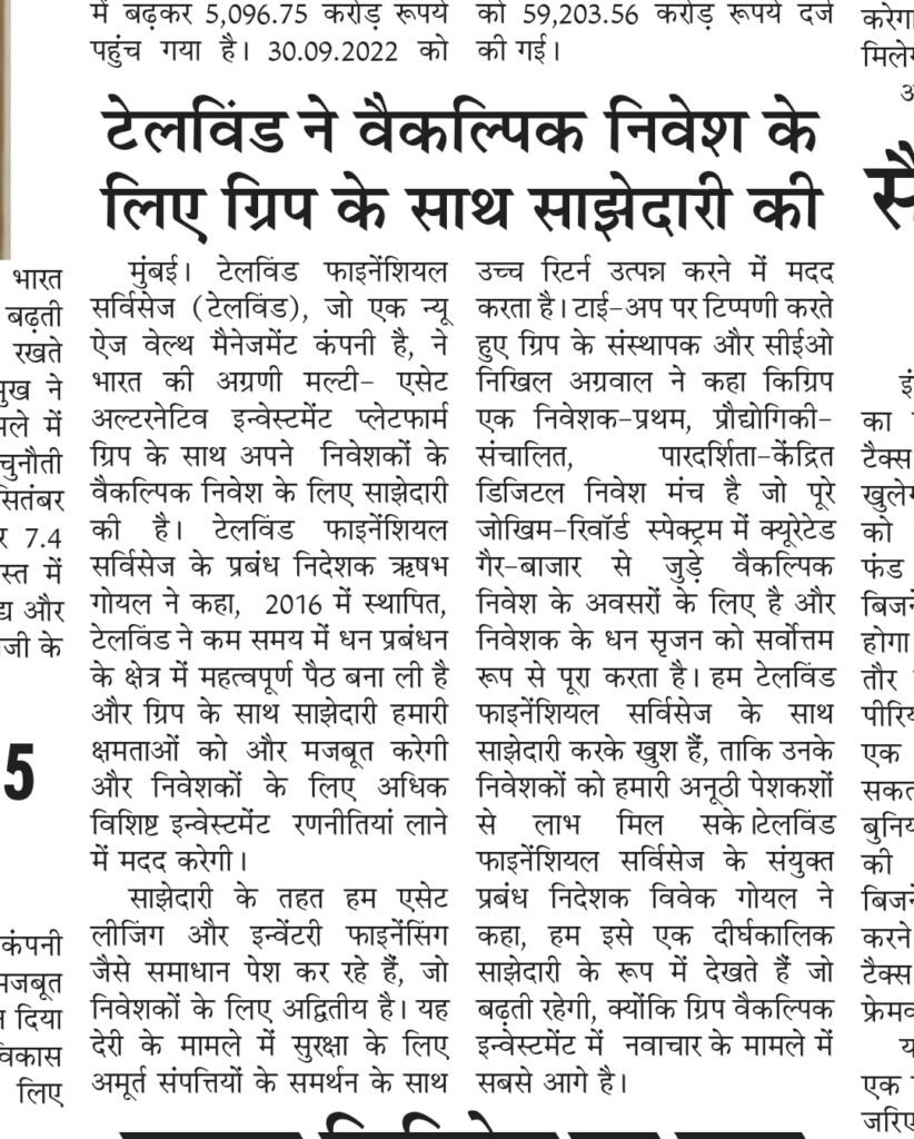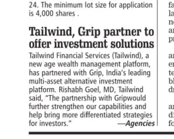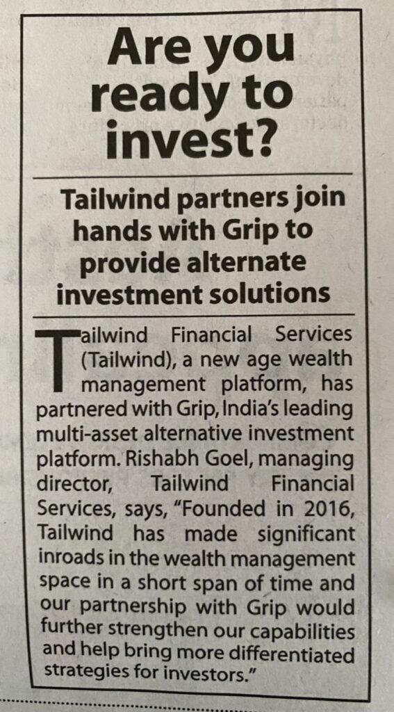 टेलविंड देगी वैकल्पिक निवेश समाधान ग्रिप के साथ साझेदारी